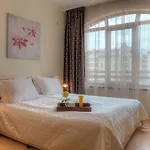 Fitness lekce, lázeňské centrum a lázeňská terapie jsou uvedeny v hotelu Royal Sun Apartments Sluneční pobřeží, který je umístěn 2 km od Pláž Čajka. Ubytování se nachází 15 minut chůze od centra města Sluneční pobřeží.